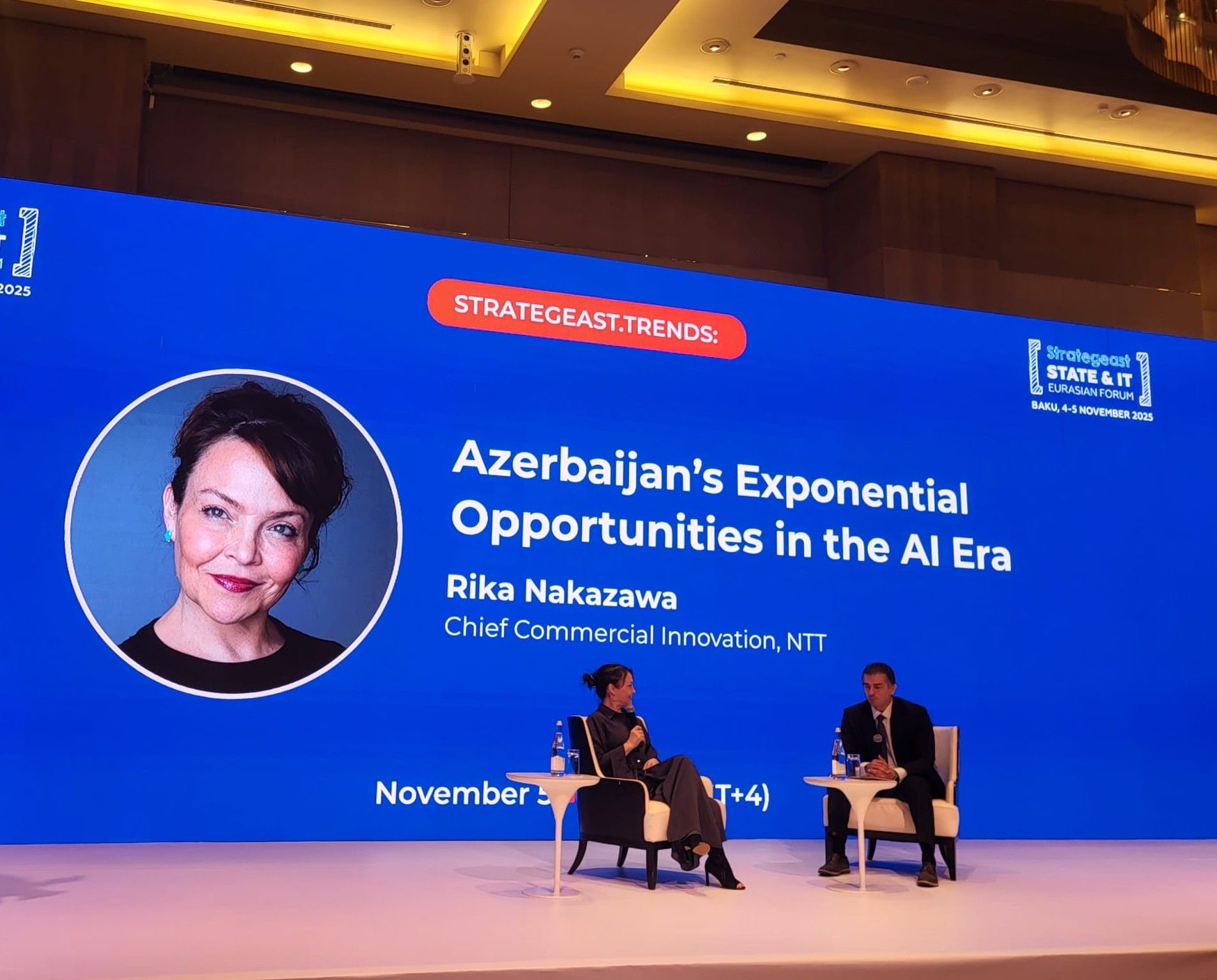 At the StrategEast State and IT Eurasian Forum, Rika Nakazawa, Chief Commercial Innovation Officer at NTT, delivered an inspiring talk, “Azerbaijan’s Exponential Opportunities in the AI Era,” exploring how the country can leverage artificial intelligence to drive innovation, sustainability, and economic growth.
