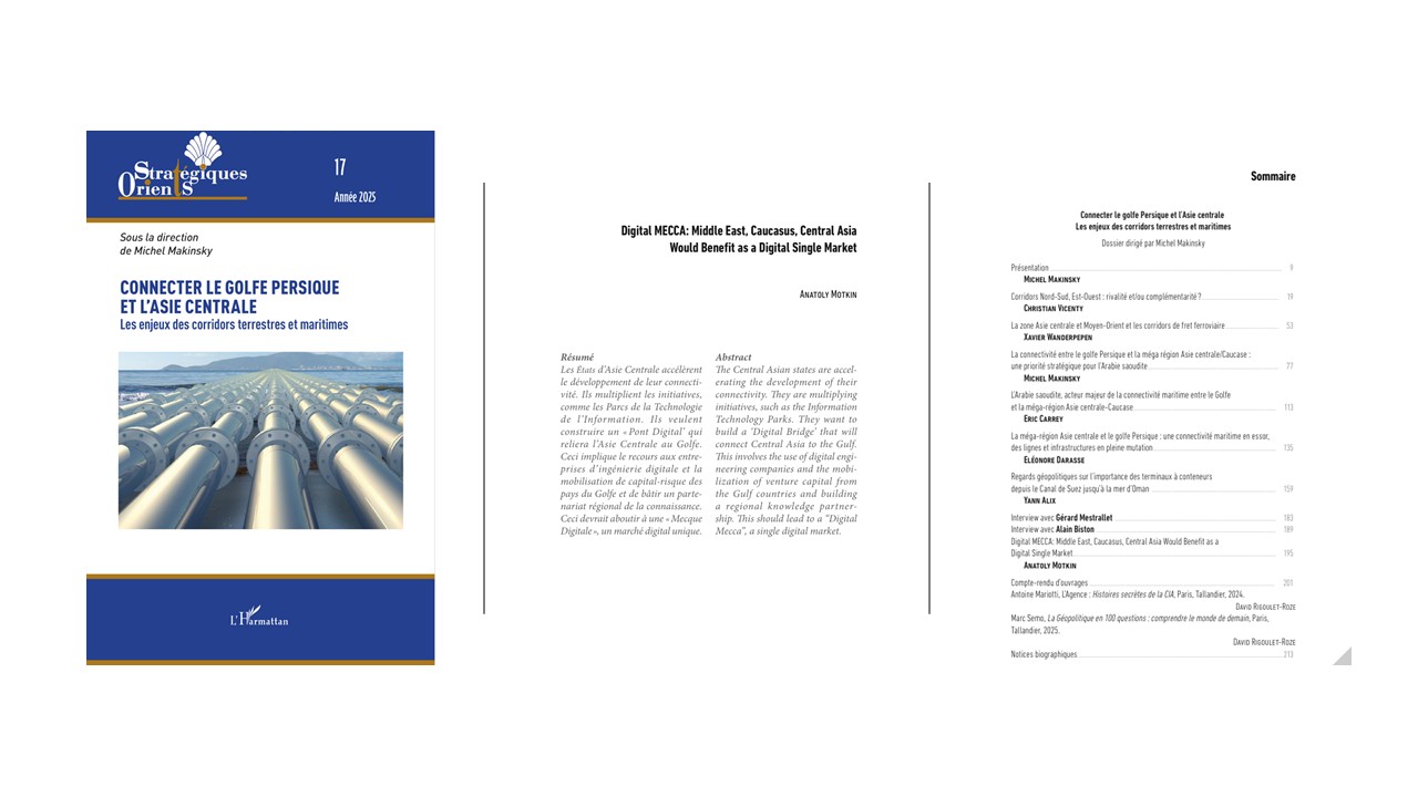 The top-tier French academic journal Stratégique Orienté, published by L’Harmattan Group, has released an op-ed by StrategEast President Anatoly Motkin titled “Digital MECCA: Middle East, Caucasus, Central Asia Would Benefit as a Digital Single Market.”